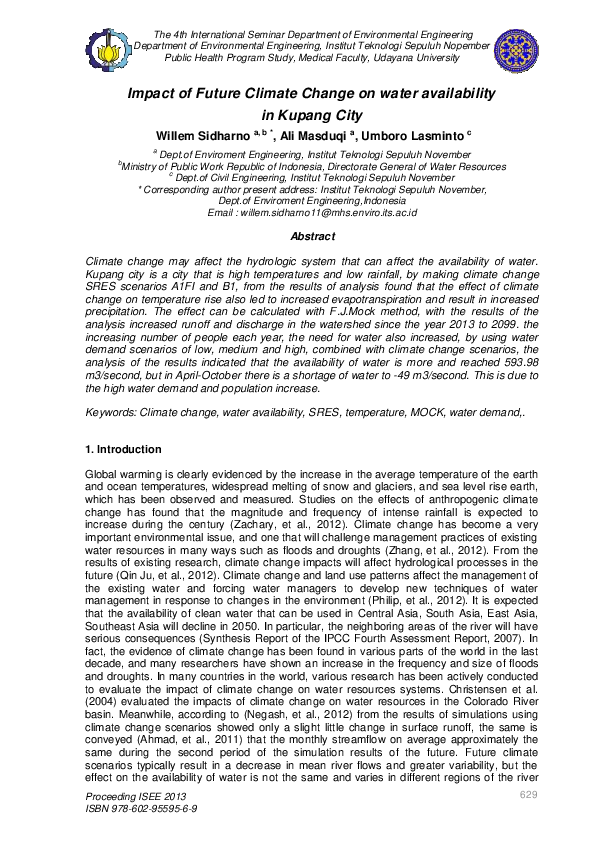Pdf Impact Of Future Climate Change On Water Availability In